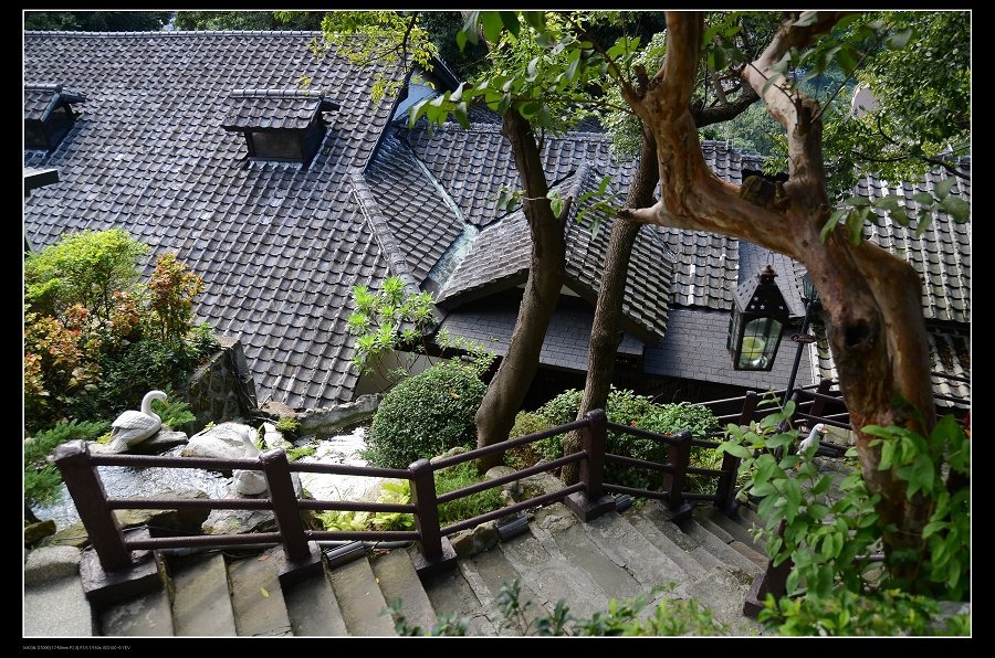 因為在山上,建築都比路面低,要進入得先下一段石階