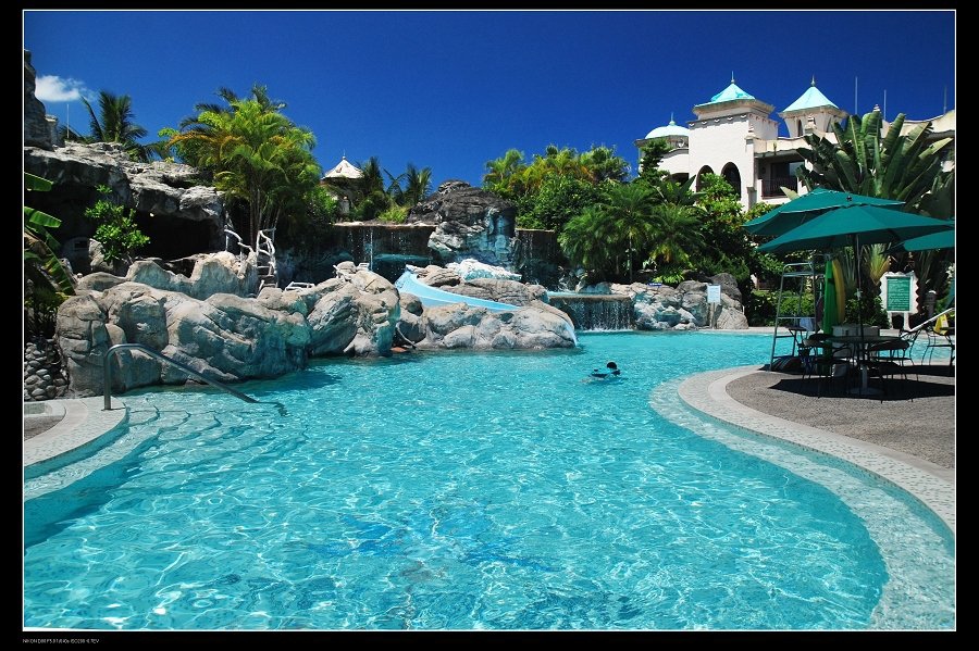 湛藍的天空,粼粼波光的泳池,一向是最好搭配