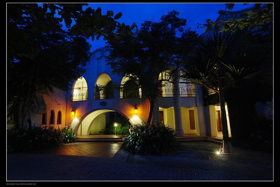 白天綠樹藍天的加持,與夜晚燈光的雕塑,產生截然不同的風貌
