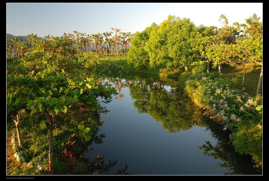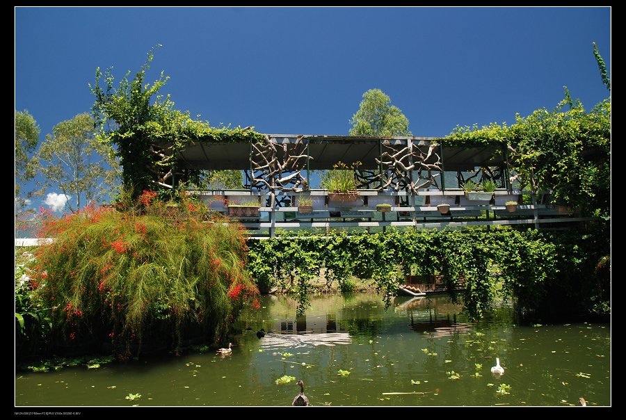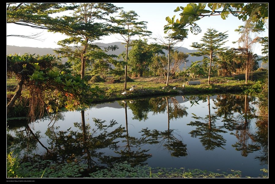 逛豐之谷,後面圍牆外有一小池塘,倒影及鴨群也是一絕喔