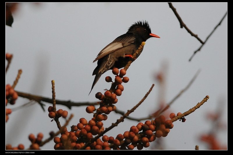 紅嘴黑鵯梳著龐克頭來參加盛宴
