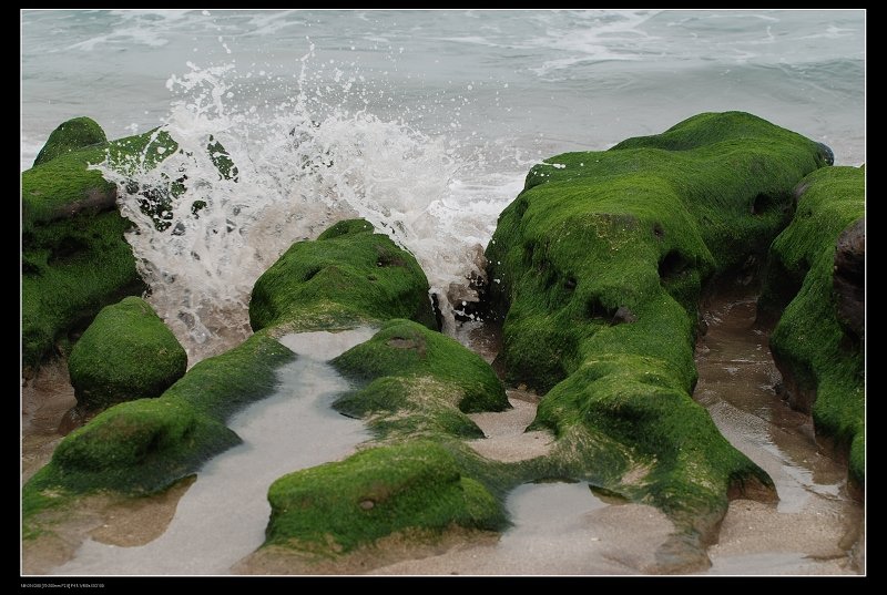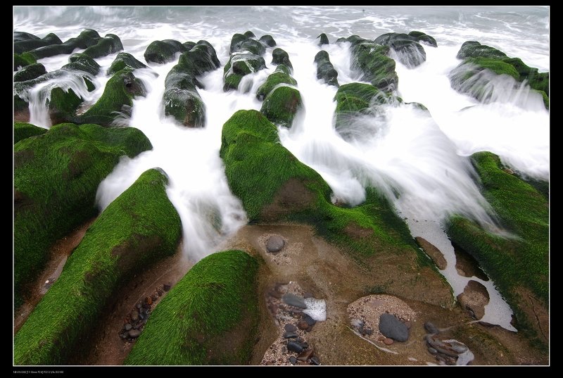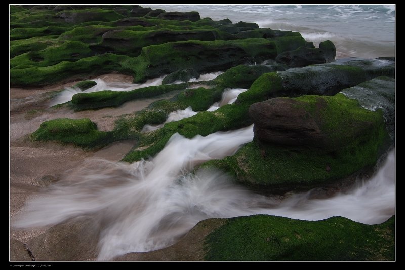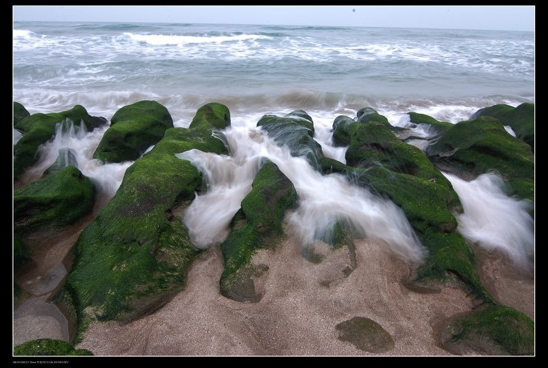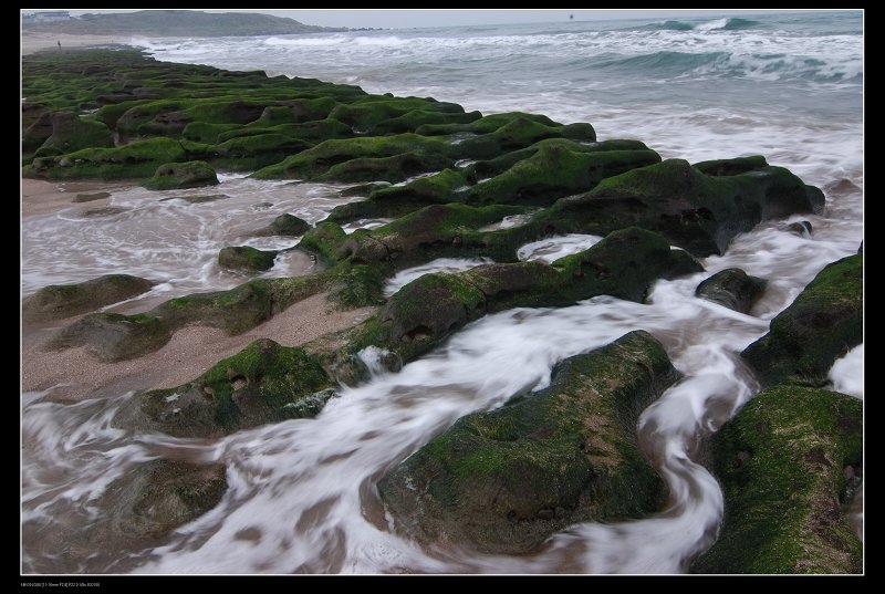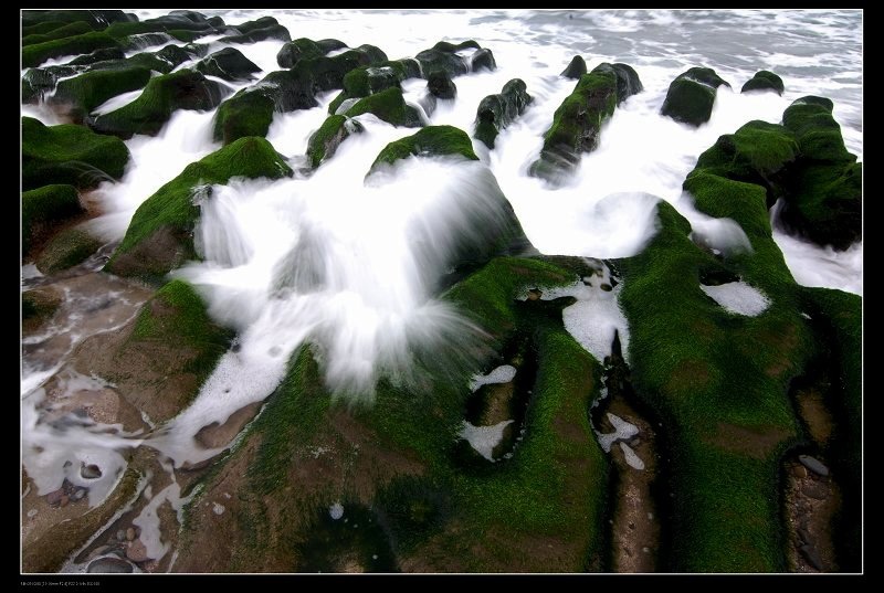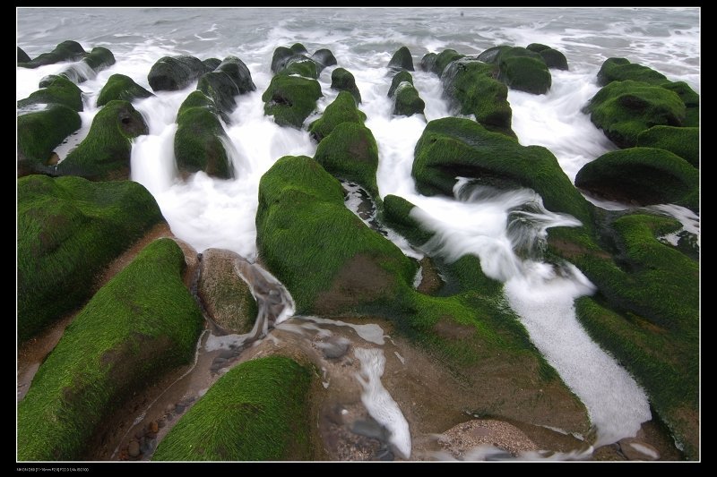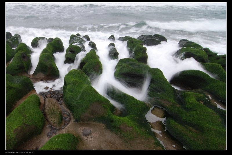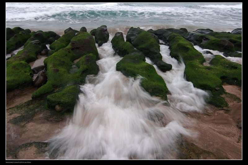 不能拍陽光普照的石槽,那就拍浪花四濺的動感吧!反正玩相機,只能意隨境轉囉!