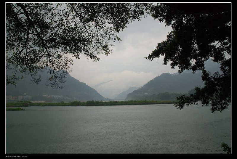 傾盆大雨下了近四小時,讓我們一行人在大雨中看著湖水逐漸上漲,遠處雲霧繚繞著山丘,