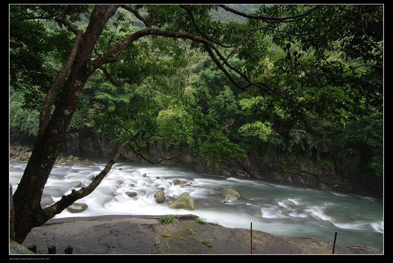 從落地窗外看到的溪水,在濃密樹林中讓人有與世獨立的感覺