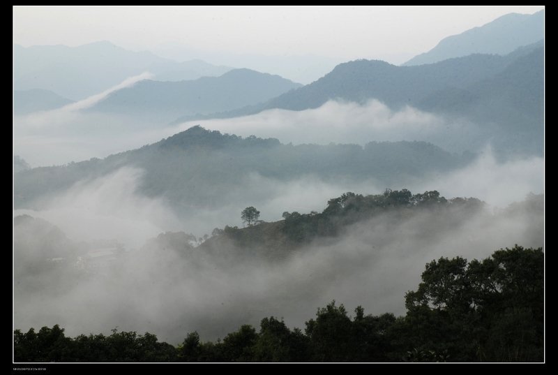 雲霧在山谷間不斷串高又消逝