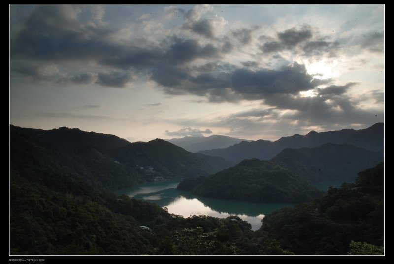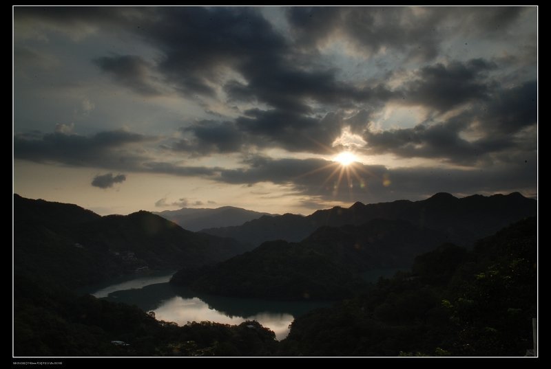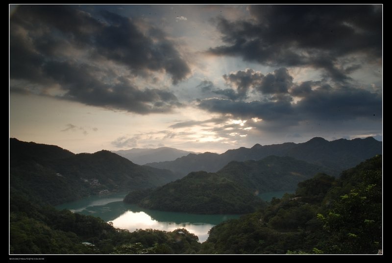 就在拼命搖黑卡,不斷換漸層減光鏡中,太陽仍一直躲在烏雲後頭,天空沒有色彩,湖面沒有雲海,只有一層薄霧在干擾攝影