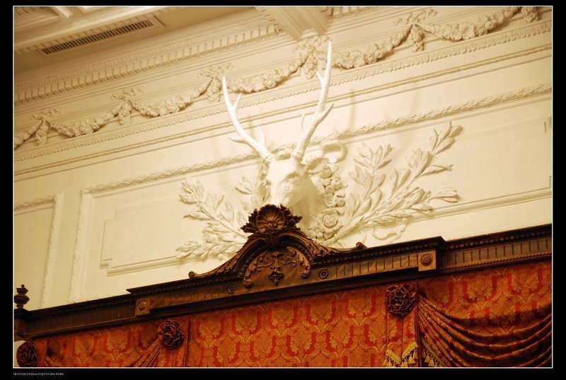 在大客廳門上有灰泥雕塑精美的梅花鹿頭,因梅花鹿是台灣特有的生物,用他來裝飾,顯示其對台灣的重要性