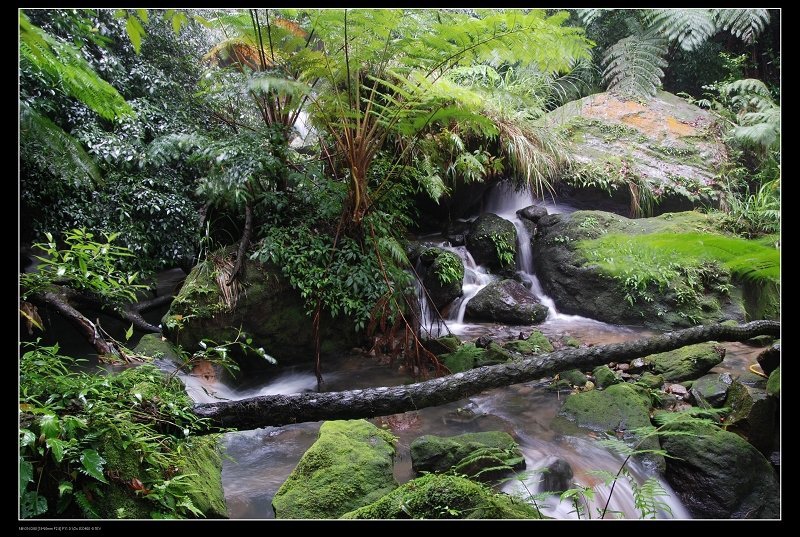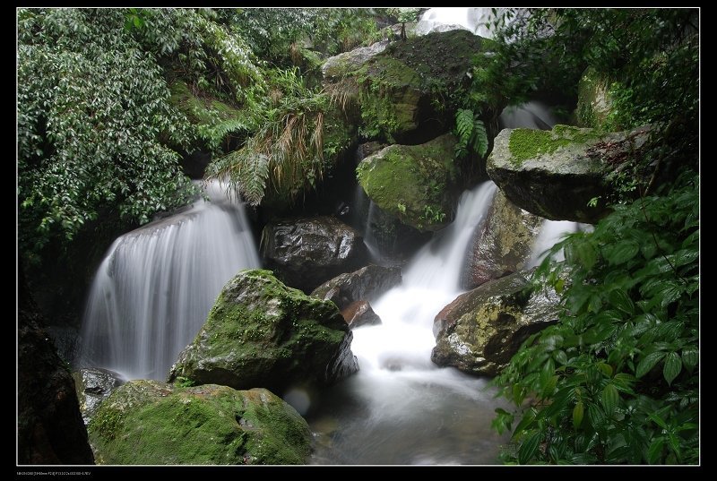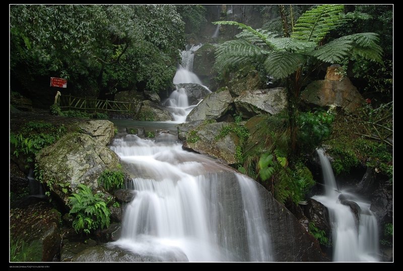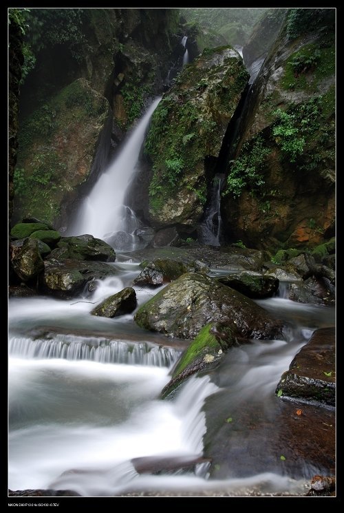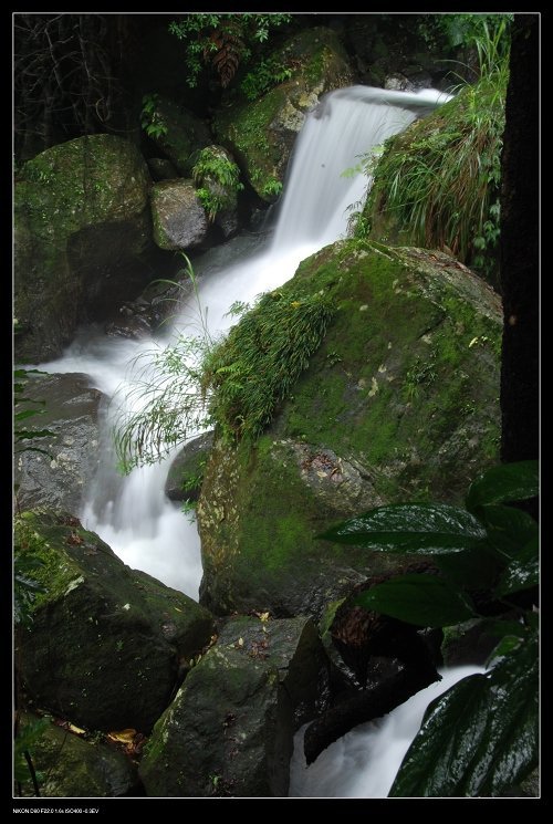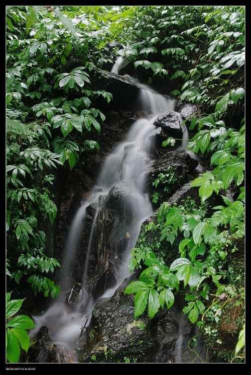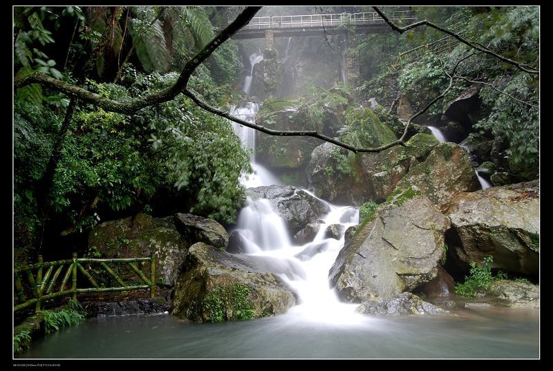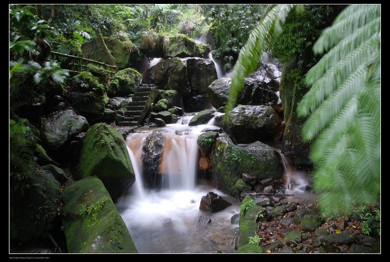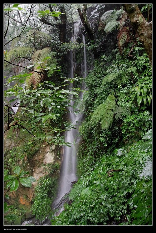 到陽明山公園的大屯瀑布, 打著傘,在佈濕滑滿清苔的步道裡,打發點時間囉