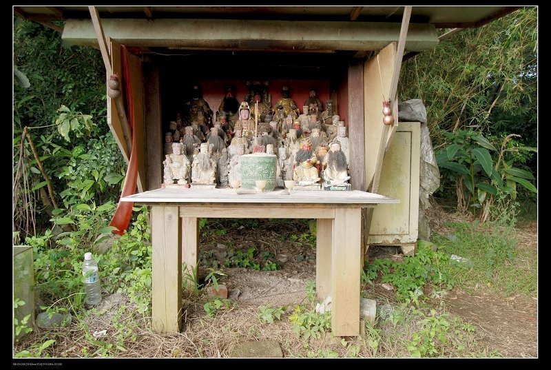 角落一座神明聯合辦公室,沒有華頂朱簷,煙香供品