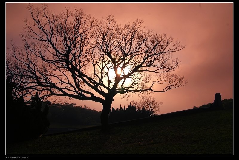 一顆繁葉盡落的大樹,在夕陽中顯得更加悽美,底下一封巨墳,道盡人生的炎涼