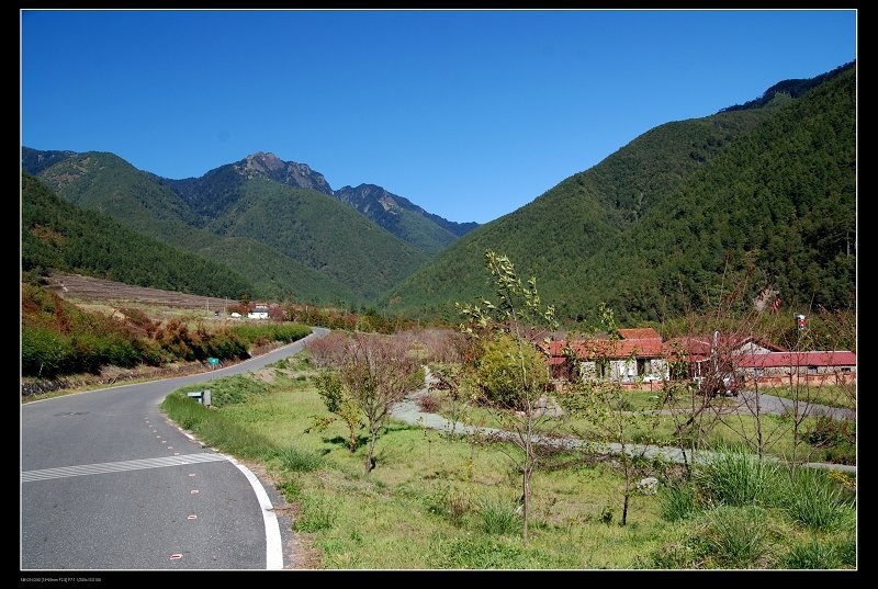婉延的道路,紅瓦的房屋,與藍天青山,譜成一幅絶美的畫面