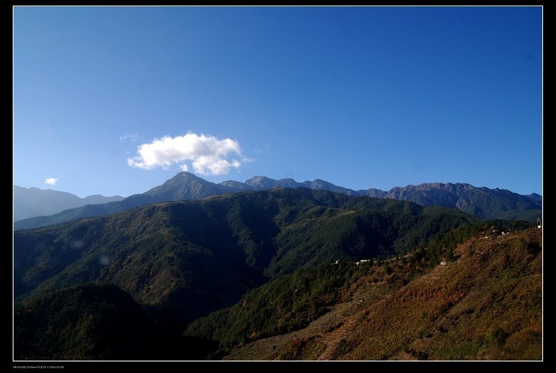 遠眺山峰,一朵頑皮的雲,罩在頂峰上,似乎在幫他遮敝艷陽