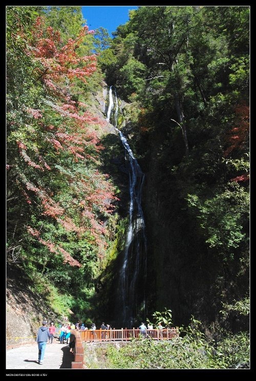桃山瀑布,又名煙聲瀑布,瀑布的柔加上楓葉的艷,這一路的辛苦,說什麼也值得了