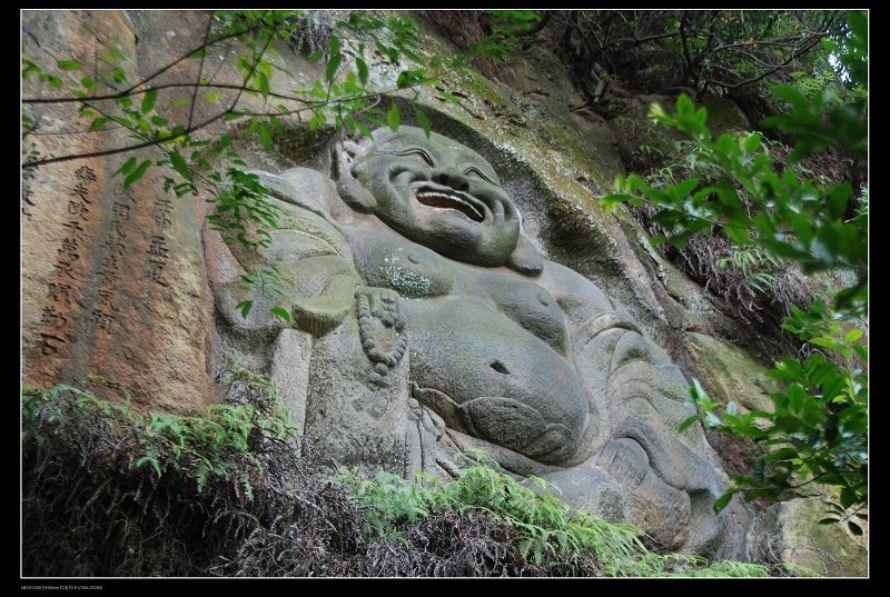 山壁上的彌樂佛雕像,因取景角度太小,有些失真
