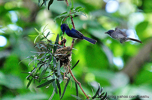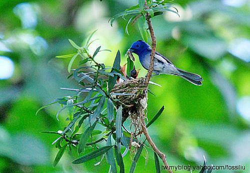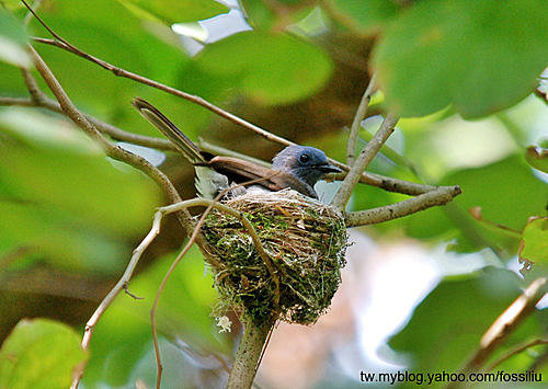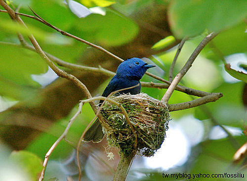 六月的時候,在植物園發現這對黑枕藍鶲,這張是媽媽,顏色比較灰暗
