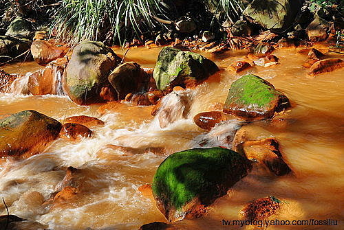 若往公車總站方向可延著這條清幽泛紅的溪水走到陽投公路