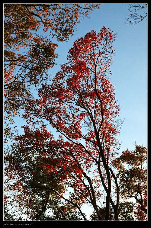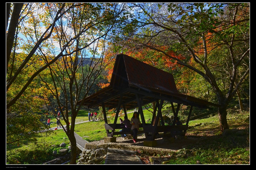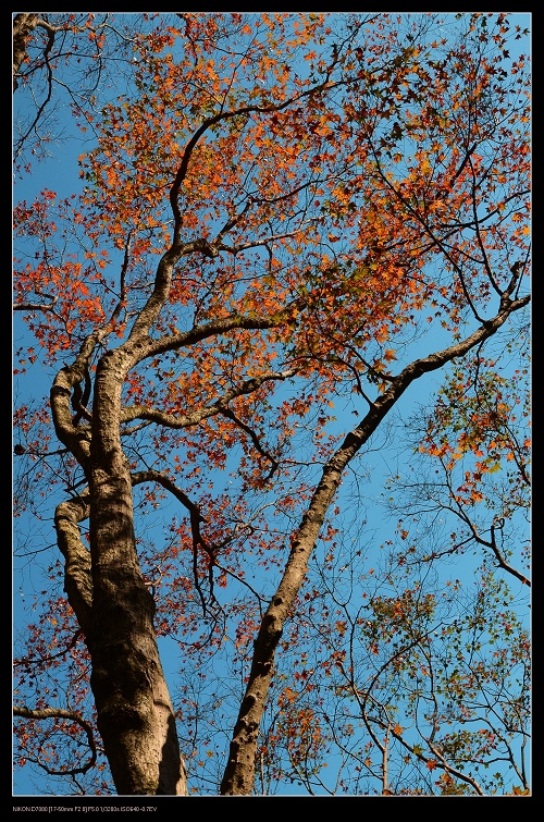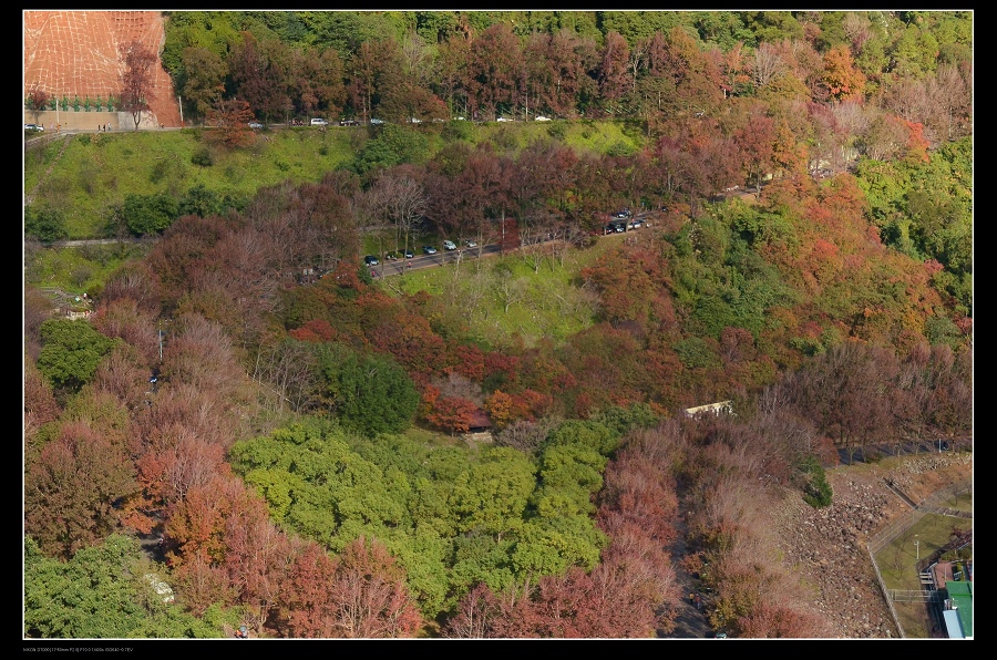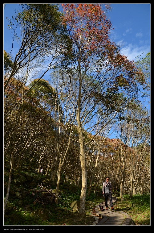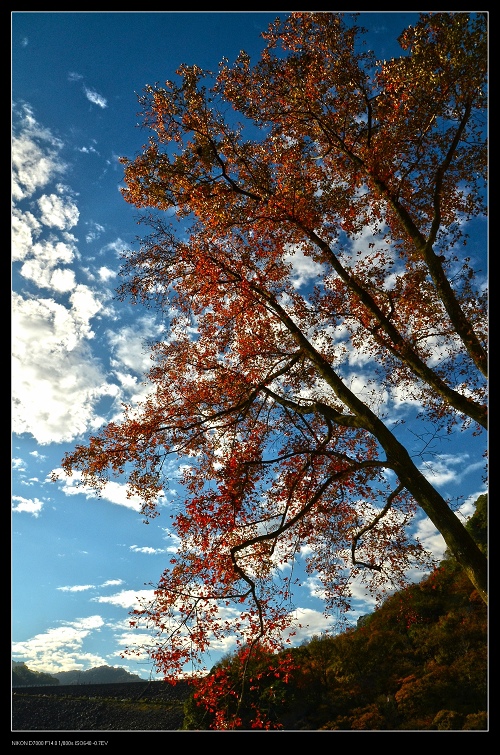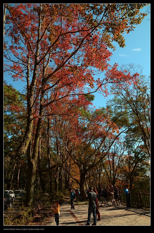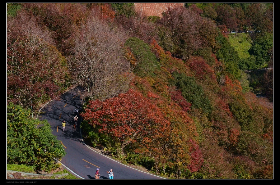 我將車停在發電廠附近,一路沿著楓葉步道往上爬,感受那種燃燒的氣氛