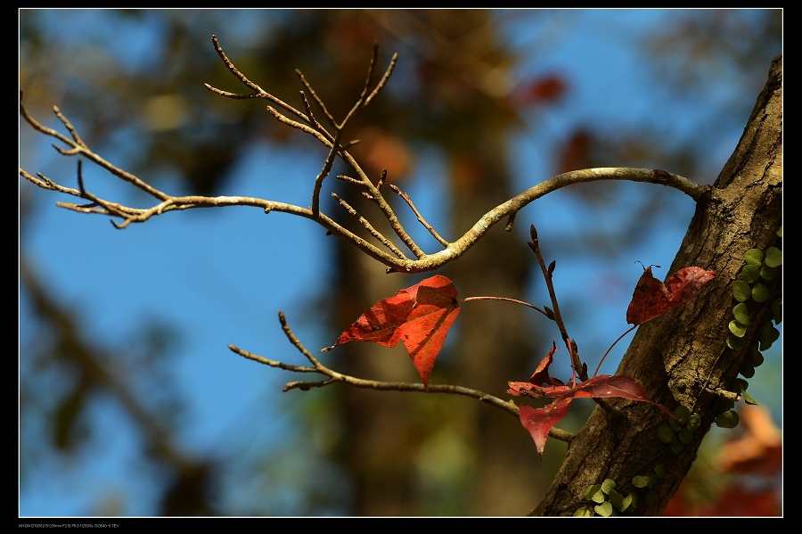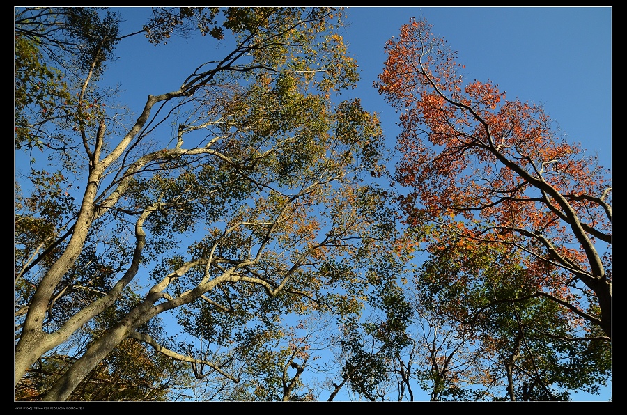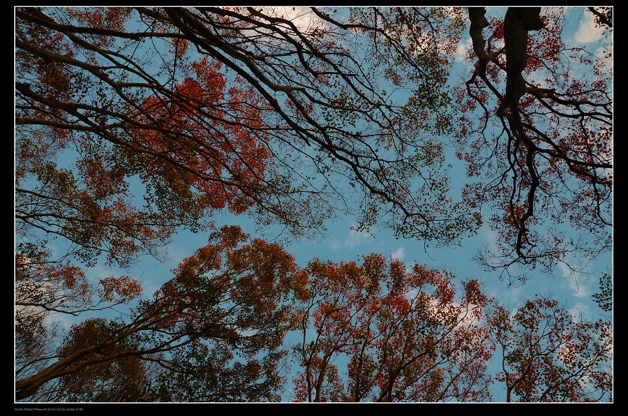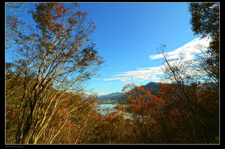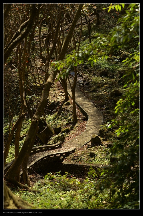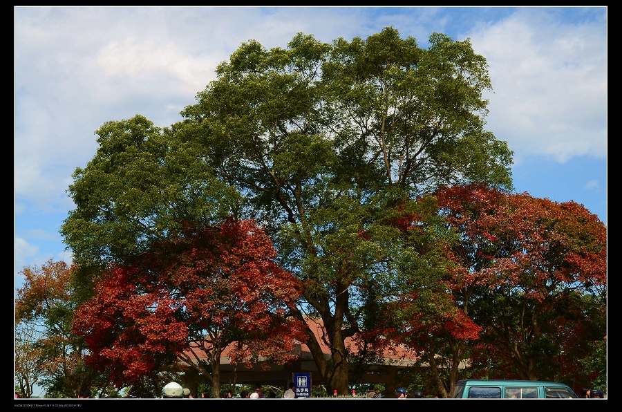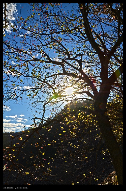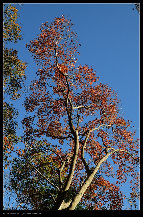 我將車停在發電廠附近,一路沿著楓葉步道往上爬,感受那種燃燒的氣氛