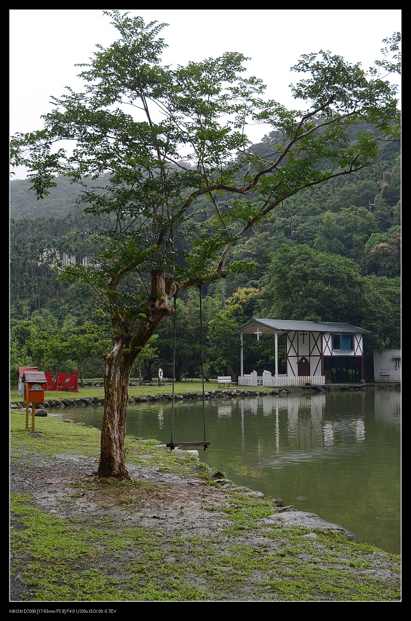 池畔大樹下也有鞦韆,後面教堂剛好可當背景