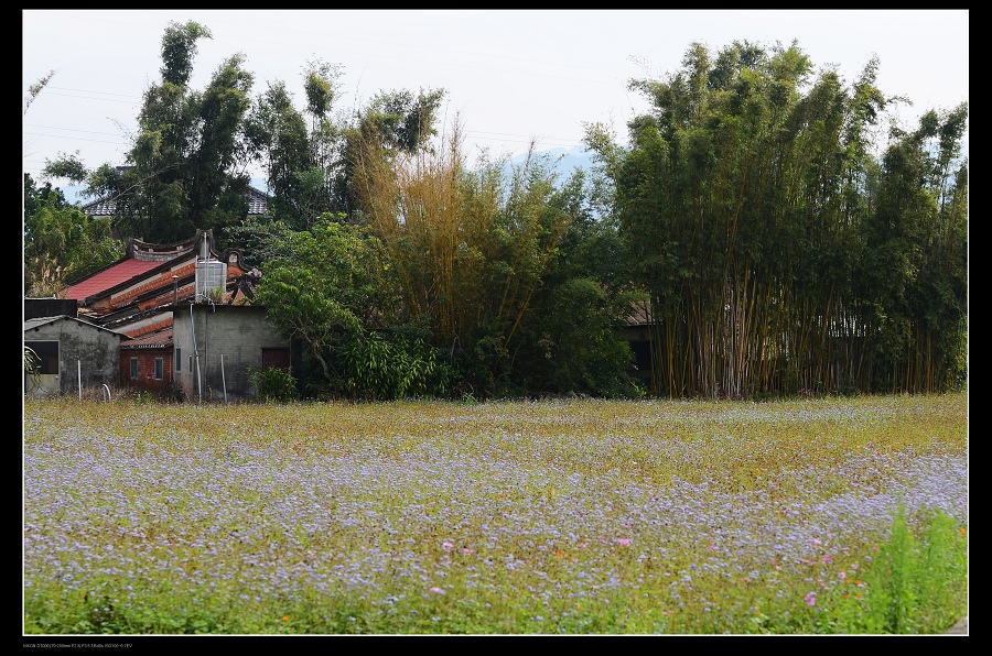 稻田裡開滿紫色小花,到處依舊有純樸的田園景色