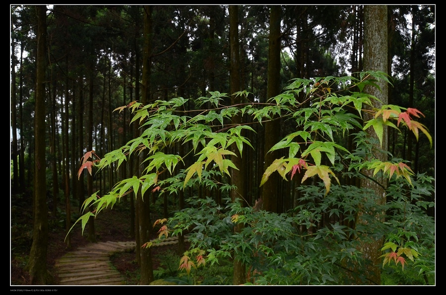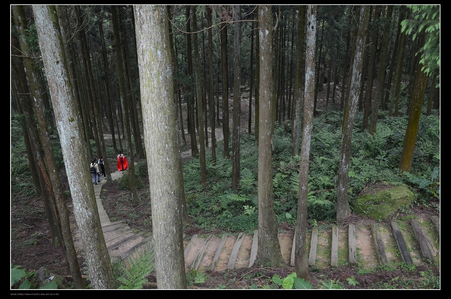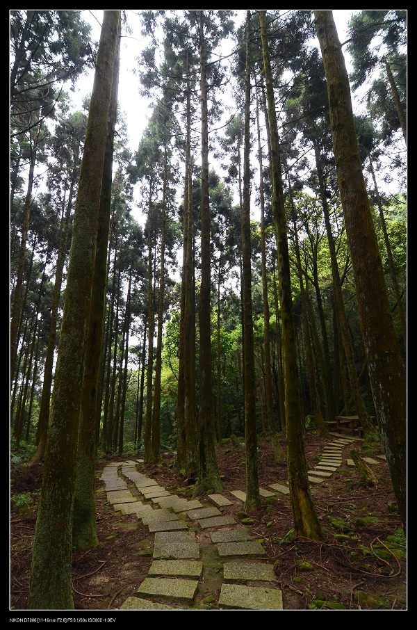 杉木林中石階步道蜿蜒,跟直挺挺的杉木搭配得很好