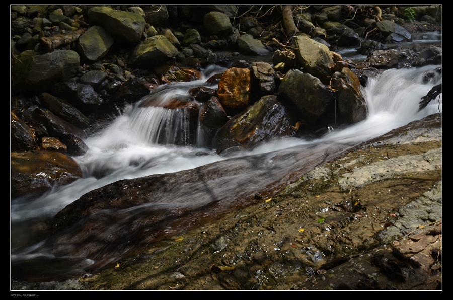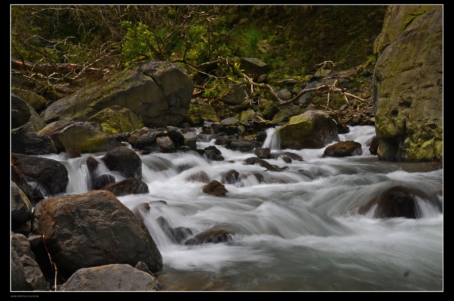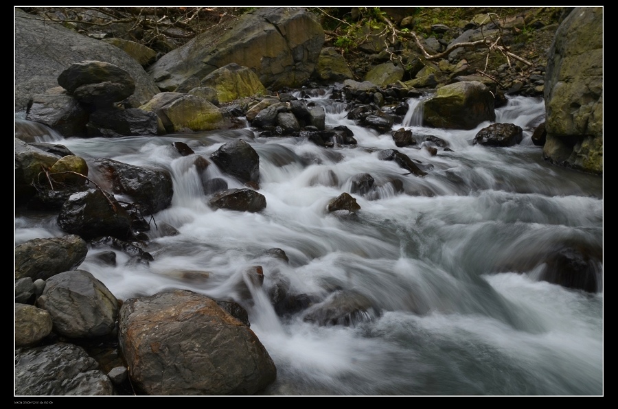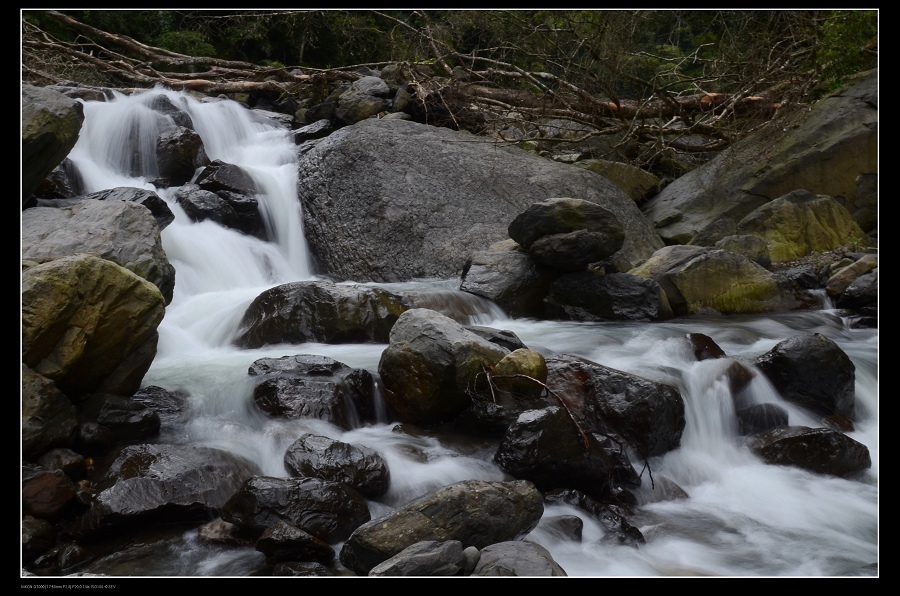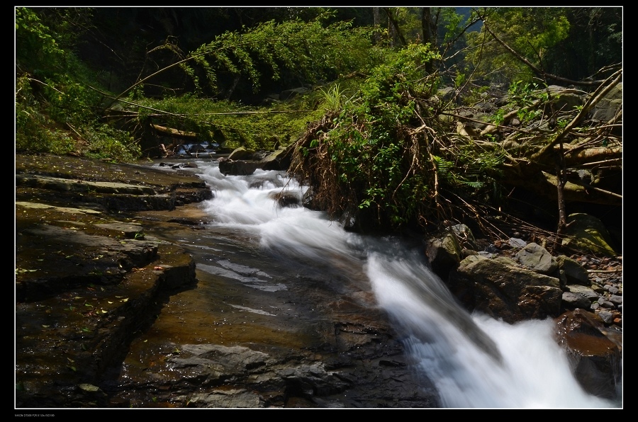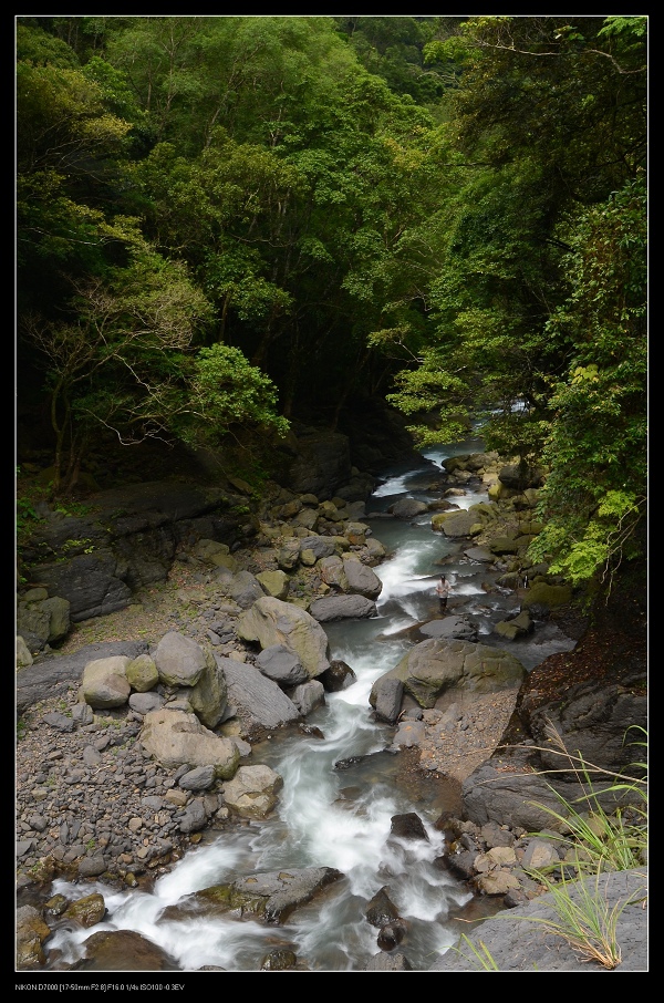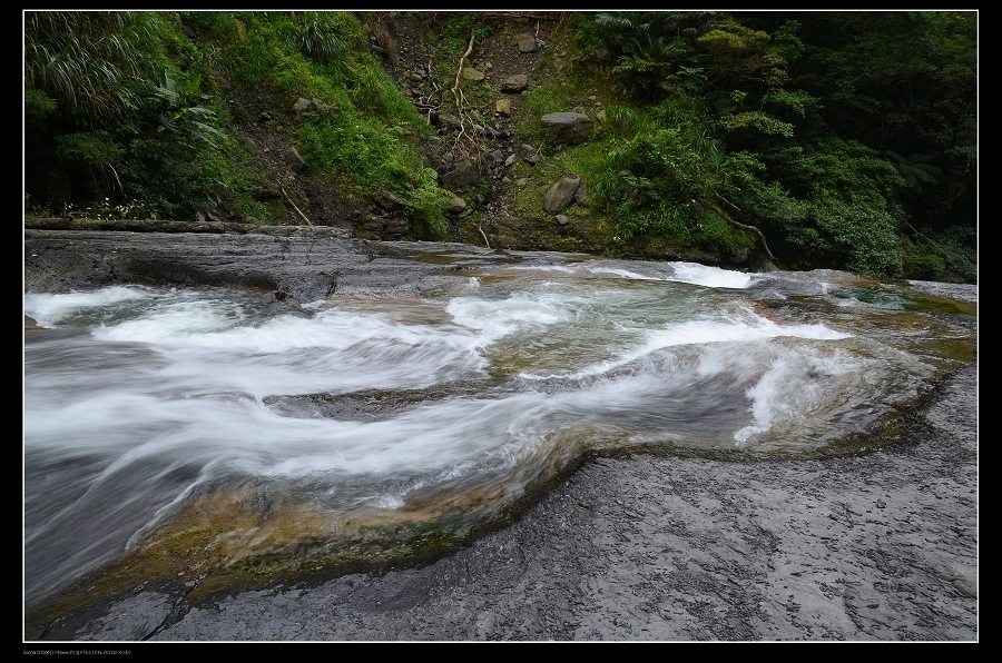 溪谷非常美麗,但可看出這裡很多植被都被大水沖倒,要進心靈谷必須跨過這小溪,要特別提醒因這裡遊客很少,岩盤上都是青苔,非常滑