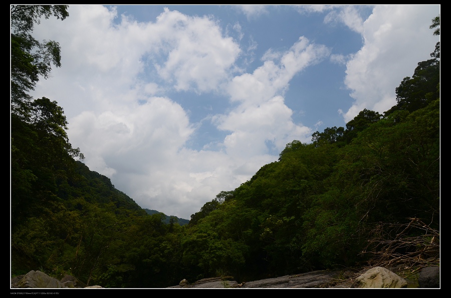 沒機會拍姊妹瀑布,只好望天興嘆了,坐在溪谷,看看雲彩演布袋戲,也是不錯消遣