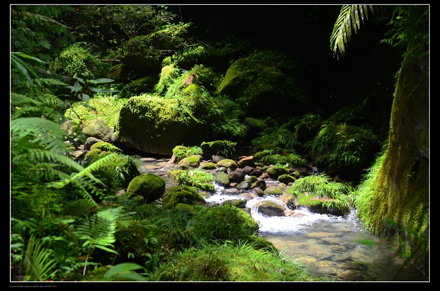 從涼亭旁有階梯下溪谷,這裡相當潮溼,所以蕨類及青苔很多,但步道整理得還不錯,走起來很舒服
