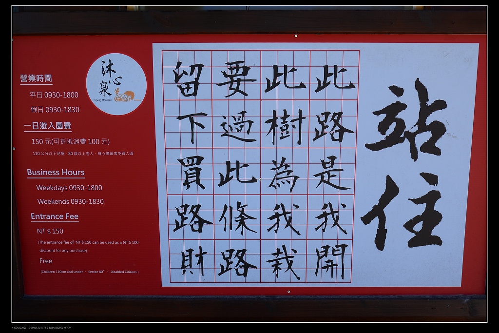 台八線中橫公路附近很多花園農場,九月想看金針花,又沒辦法去六十石山,只好到沐心泉來過過癮,停車場前的招牌很有趣,入園收買路錢150元,還可到餐廳抵用100元