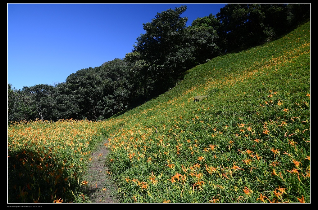 從停車場下來,往山坡上走,馬上迎接遊客的就是這滿山遍野的金針花海