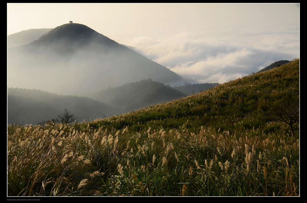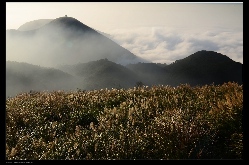 大屯山因交通方便,且有芒草及寬闊視野,是北部人拍夕陽的好地方,若幸運遇有雲海,畫面又會更迷人