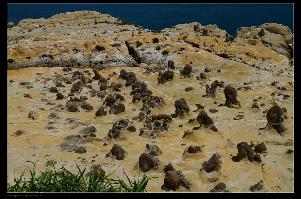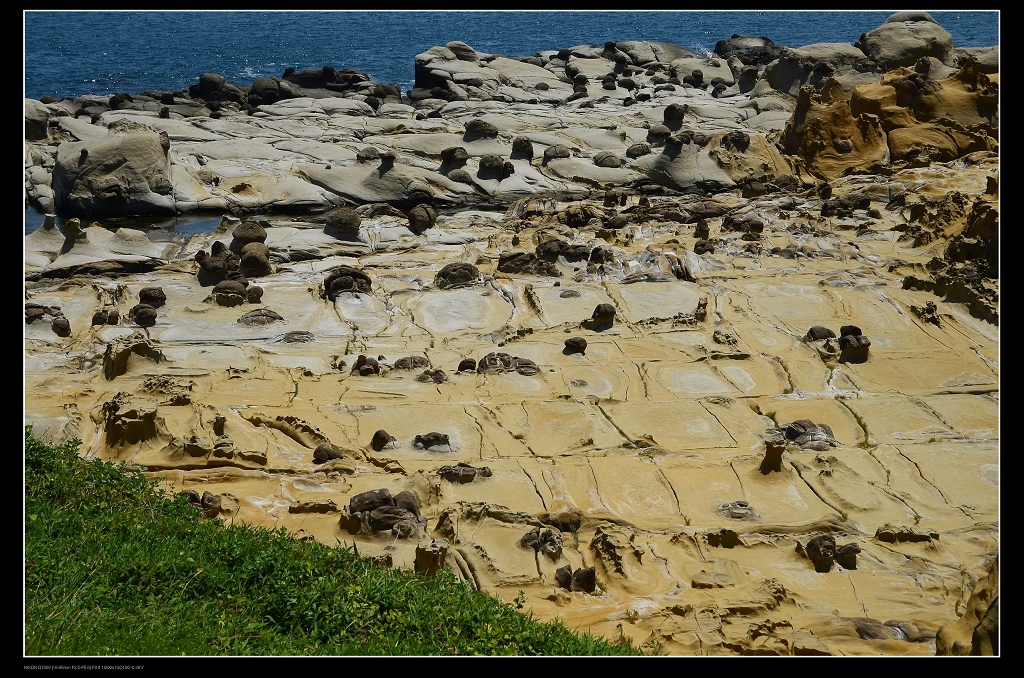 公園內最有看頭的就是這一大片豆腐岩、蕈狀石、柱狀玄武岩的海蝕平臺,規模不輸國際知名的野柳