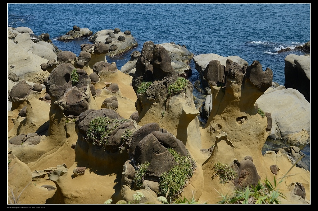 這裡抗鹽抗旱的海濱植物不少,藍天綠地加上點點奇石,的確很美