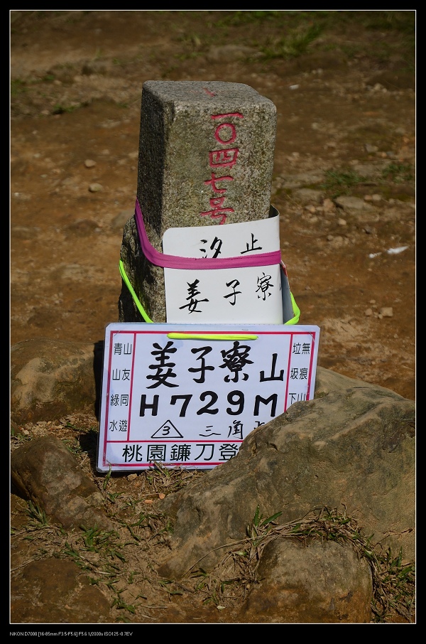 山頂有一顆1047號三等三角點,為台灣小百岳第11號,姜子寮山步道是淡蘭古道支線,稜線四通八達,可連走中窯尖、望古山、菁桐古道、磐石嶺遠至五分山或暖暖