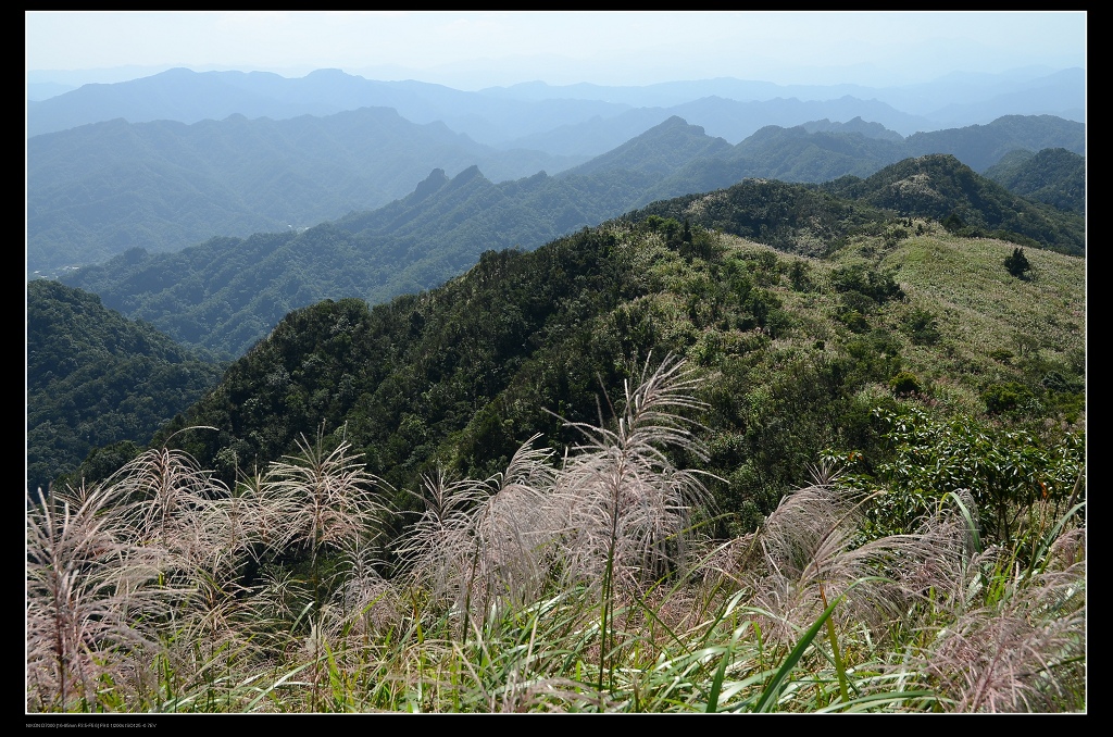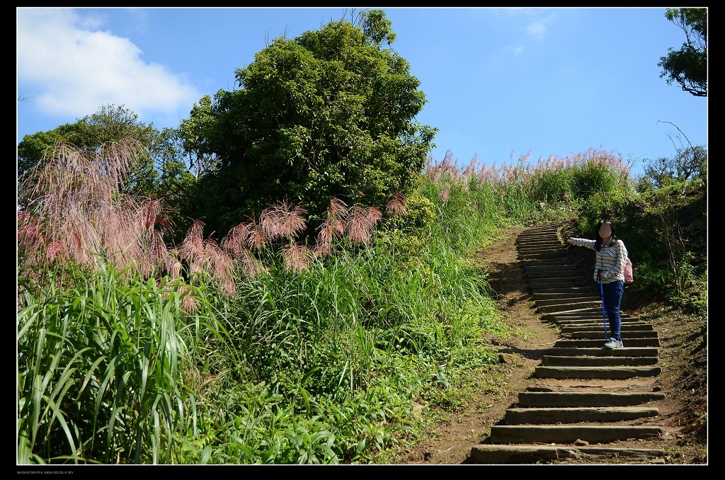 快到山頂前一百公尺,視野突然開闊起來,因東北季風的吹襲,道路兩旁也從樹林變成了芒草