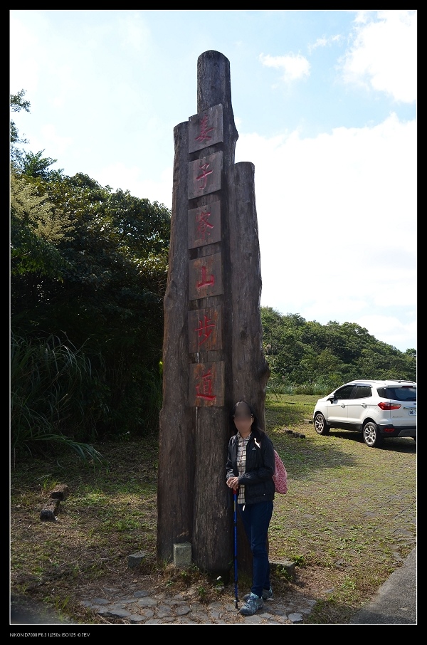 姜子寮山登山口停車場超大,開車上來不怕沒地方停,入口處有一隻姜子寮山步道大路標