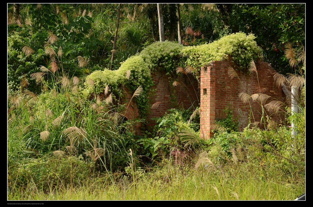 路雖長,但這條路上也有許多景可拍,例如這棟被綠草覆蓋的磚房