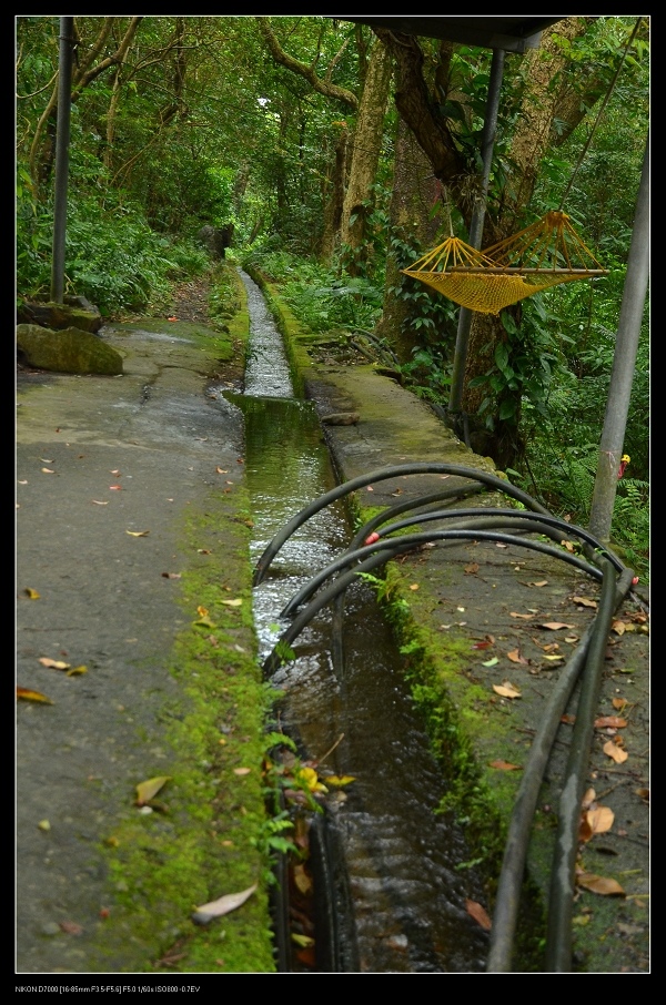 猴洞圳建於日據時期大正六年(1917年),圳水引自猴洞坑溪,主要是灌溉下游的農田,這裡還搭了棚架,方便附近農家在這洗衣,旁邊還有吊床,夏天在這睡午覺一定超舒服