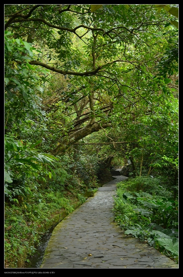 似乎走進綠色隧道,步道入口還有小雜貨店