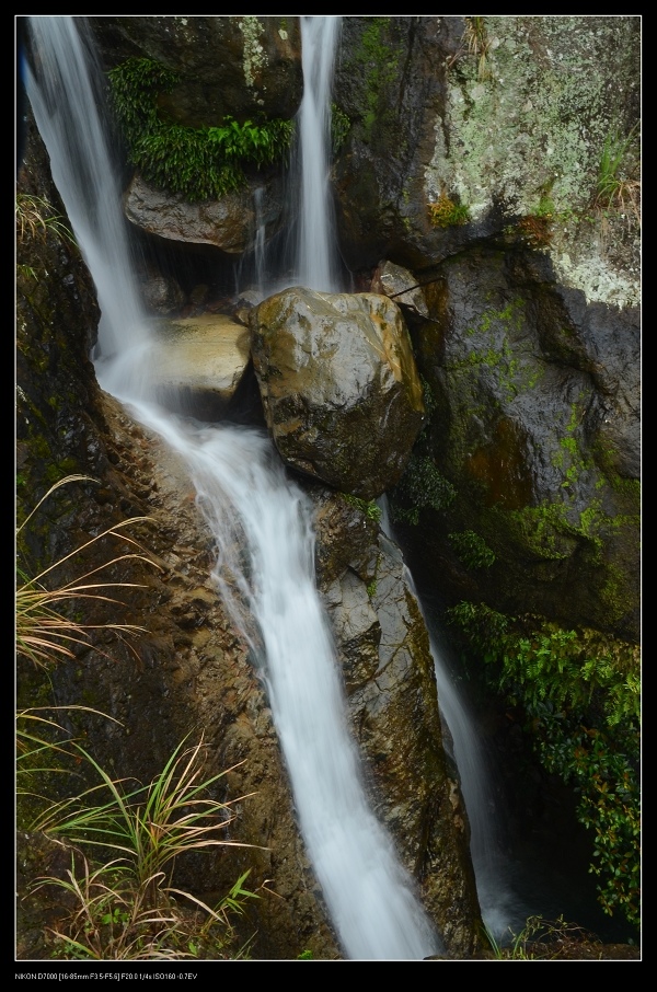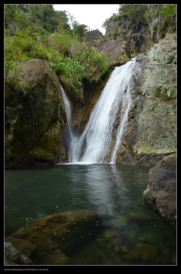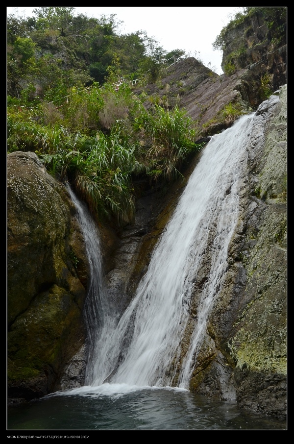 一轉眼就到猴洞坑瀑布,兩路流水一起注入潭中