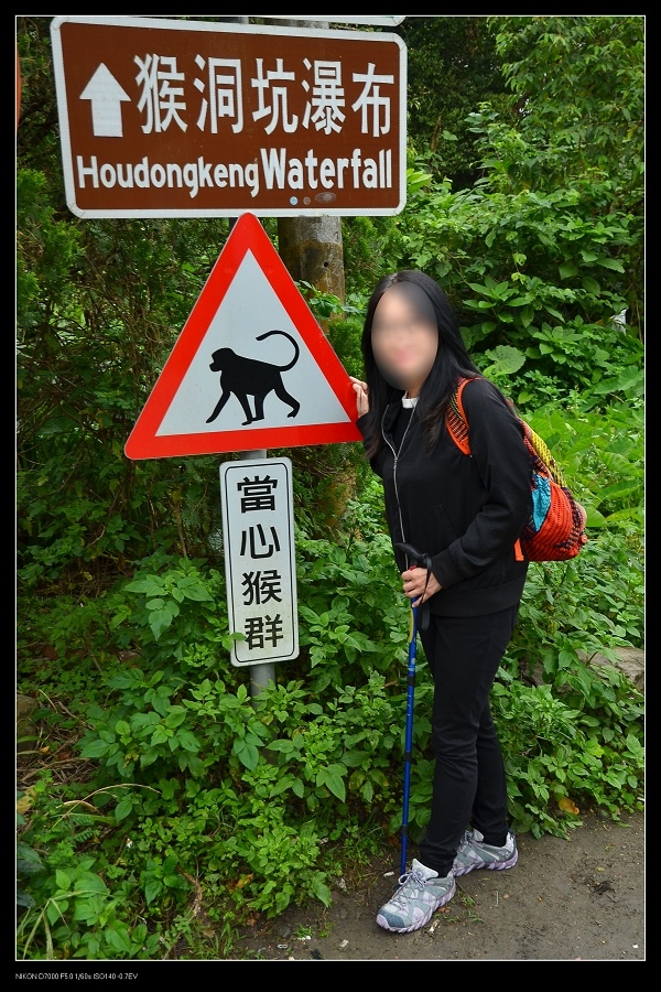 猴洞坑瀑布是「蘭陽十八勝」之一,入口處還有當心猴群告示牌,還真期望在路上能看到猴子