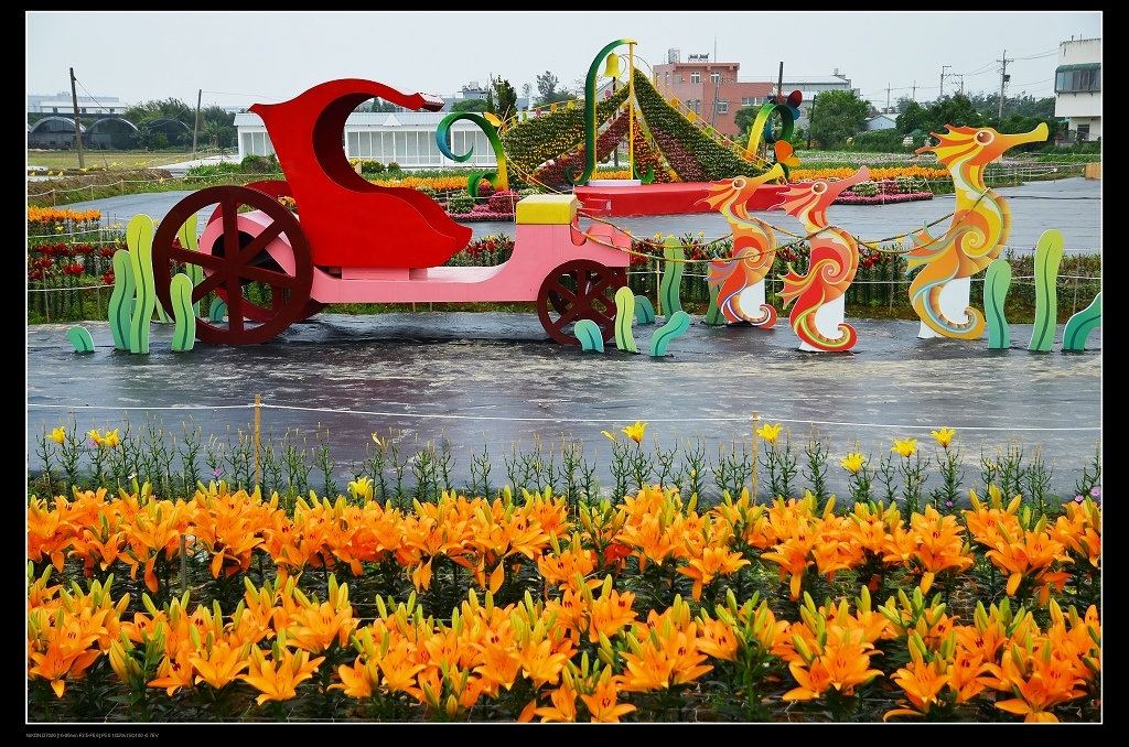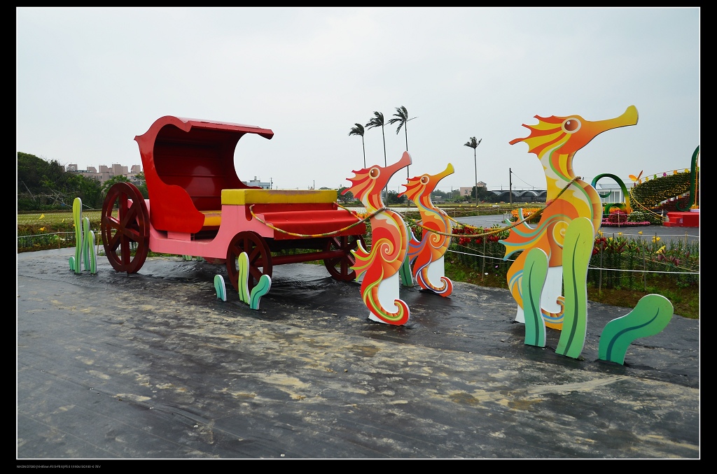 今年馬車出心裁,的確有馬,但是用是彩色海馬