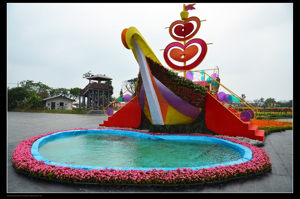 這艘花船前面還有一個心型小水池,對比挺有趣