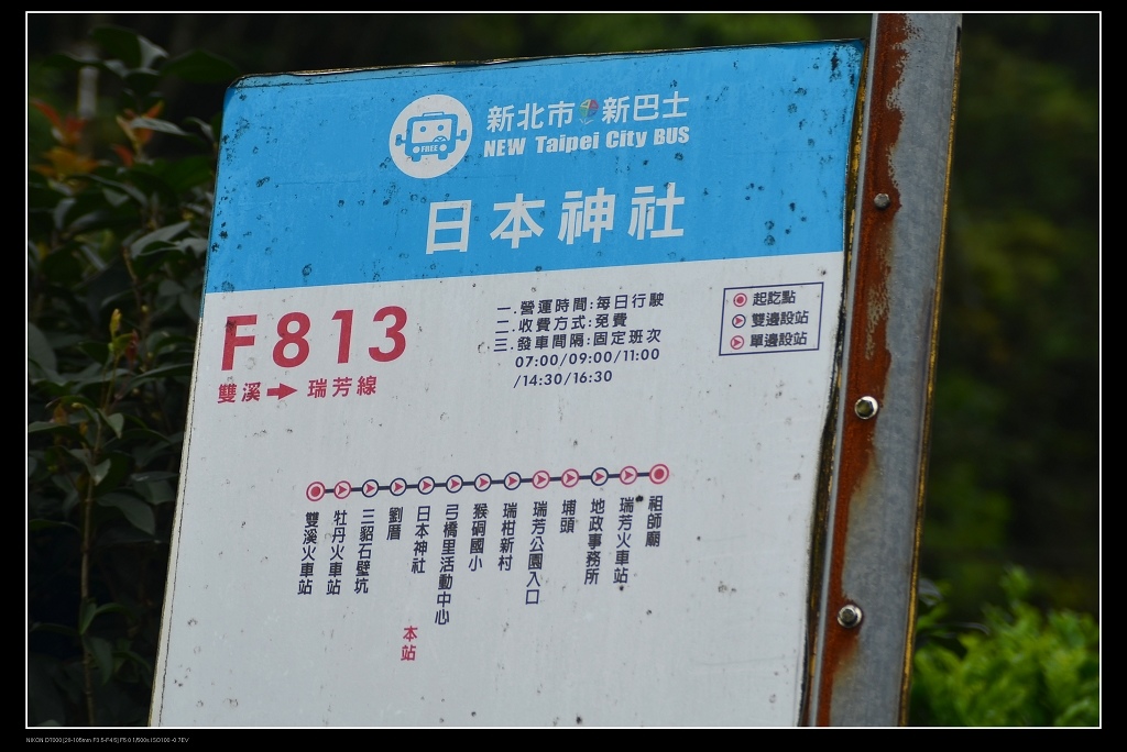 侯硐有兩個地方較適合觀賞鐘萼木,一個是日本神社下方,新北市還真貼心,仔細一看,這公車竟然是免費的耶