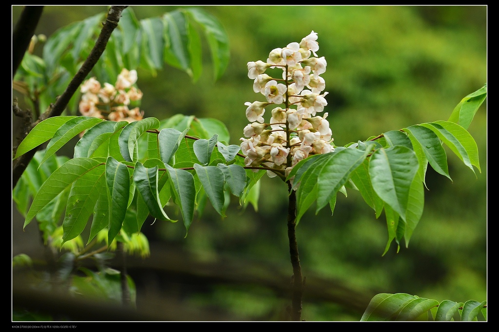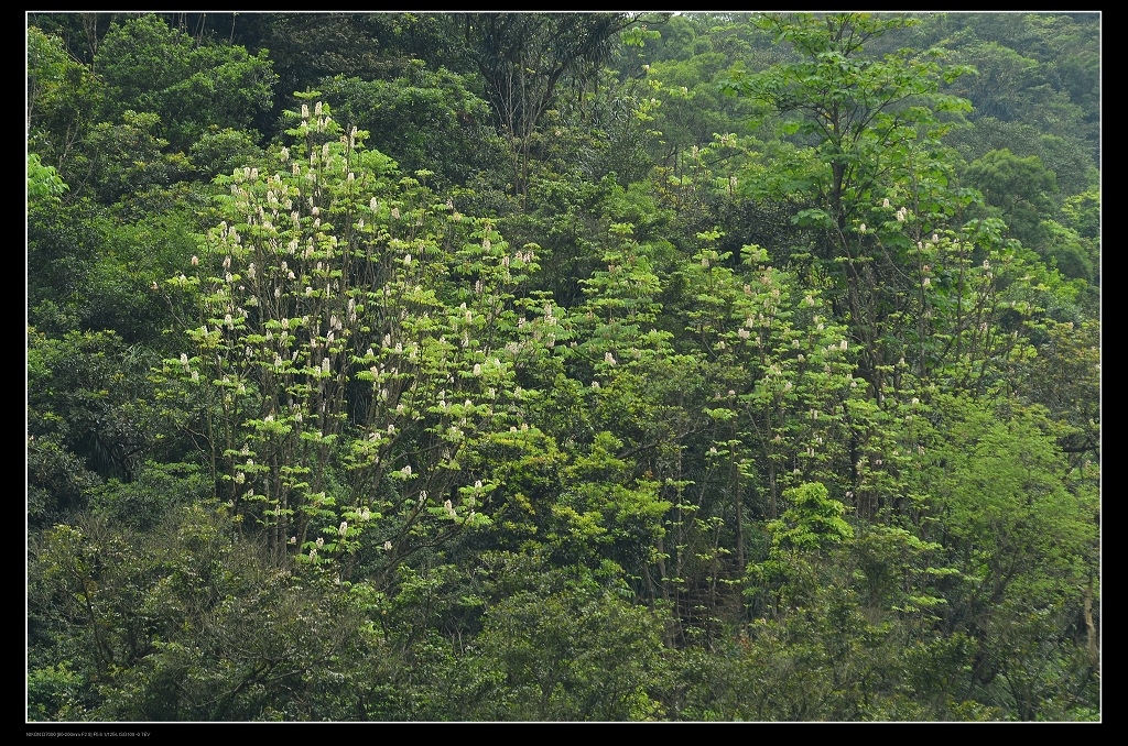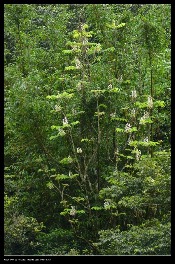 花是在樹幹或枝端長出花梗,一串共有32朵花,葉子展的很廣,適合日照不是這麼充足的環境