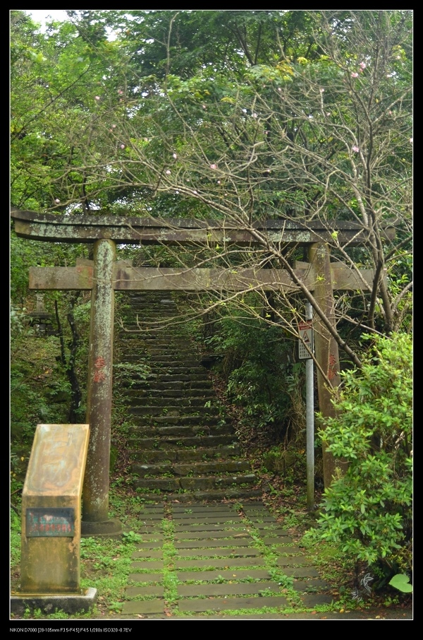 神社入口的鳥居,旁邊那株看起來像櫻花,若開花應該會很美