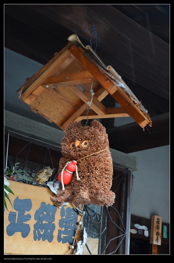 門口掛的貓頭鷹也很可愛,身上還綁個小酒瓶