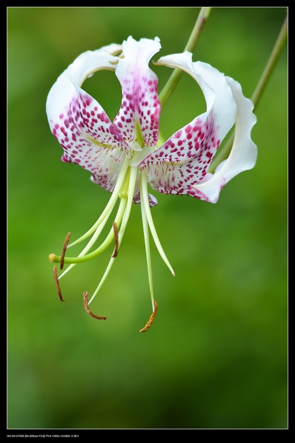花朵向後彎折,抬頭挺胸,絕不低頭喪氣,花快謝了,也只會變色,底下肉質乳突,更是艷紅鹿子百合一大特色
