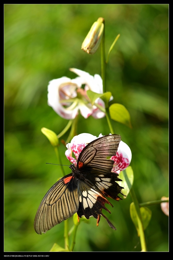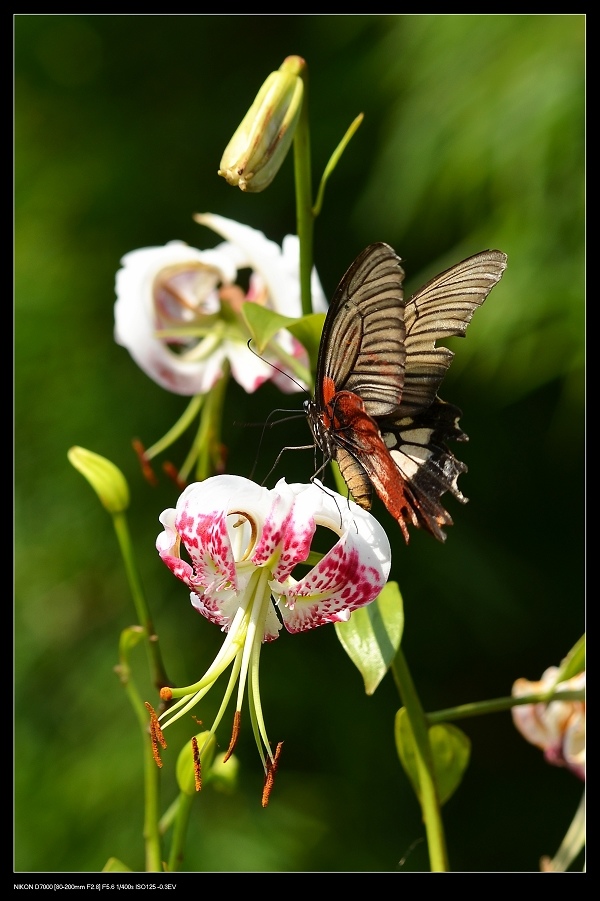 艷紅鹿子百合不只愛花人追花,蝴蝶,蜜蜂,甚至螳螂都來朝聖了