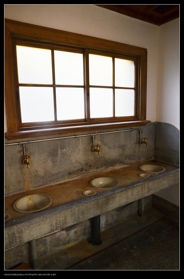 這裡洗手台還保存著古早味,圓圓的洗手盆,旁邊還有一個小圓孔,不知當時的作用是什麼